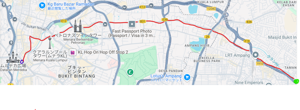 自動車優先社会のマレーシアです。クアラルンプール市内でも安全に自転車に乗れる場所は限定されますが、休日の朝のアンパン通り(Jalan Ampang)なら車が少なくて良さそうです。地図を見るとアンパン地区の東にイオンBIGがあるので、そこを目的地に出かけてみました。